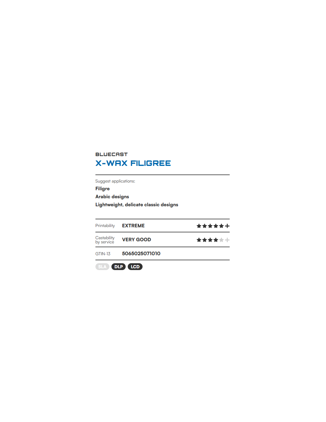Entwickelt für den direkten Schmuckguss im Feingussverfahren (Wachsausschmelzverfahren). Das Material wurde primär für den 3D-Druck von Micro-Pavé-Fassungen, feinen Filigranarbeiten, detaillierten Gravuren und Modellen mit Wandstärken unter 0,3 mm entwickelt.
