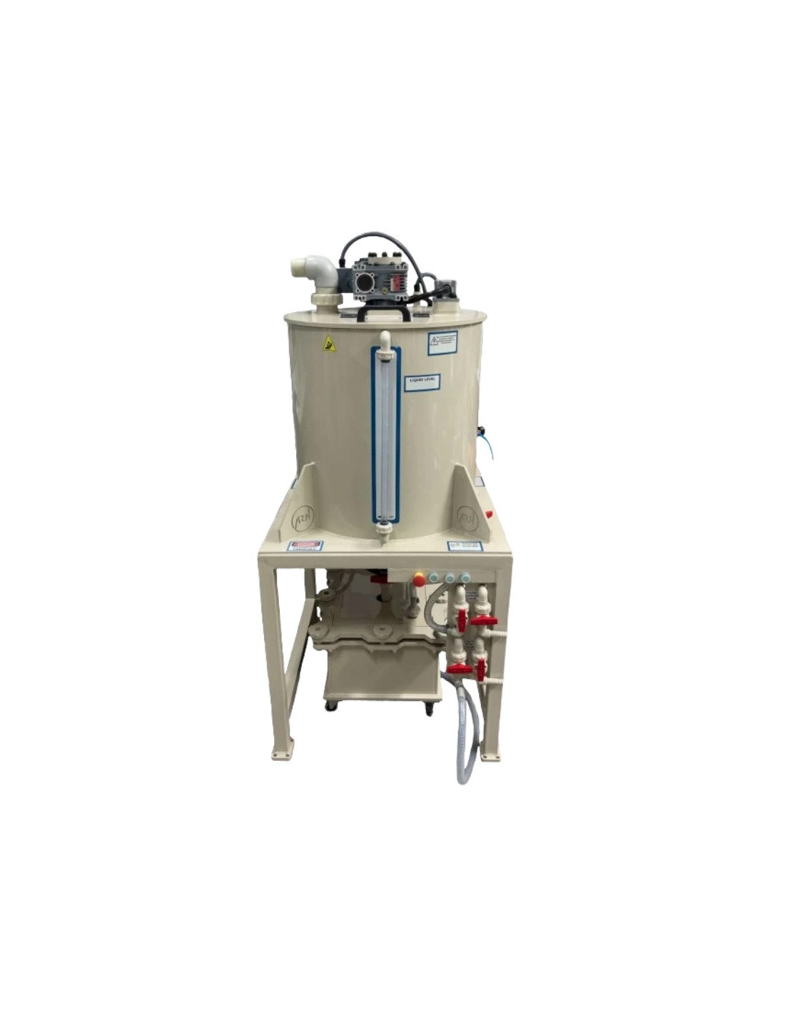 Zariadenie je kompletne vyrobené z antikorózneho polypropylénu (PP), ktorý vykazuje extrémnu odolnosť voči agresívnym chemikáliám a kyselinám. Integrovaný systém miešania zabezpečuje dokonalú homogenizáciu roztoku, zatiaľ čo výkonná filtračná sústava zachytáva aj mikroskopické častice kovov. Hlavnou ekonomickou výhodou je zníženie nákladov na nákup novej chémie a zefektívnenie následnej rafinácie drahých kovov z odpadových kalov.